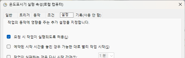 저는 '온도표시기 실행'으로 새 작업을 만들었습니다.