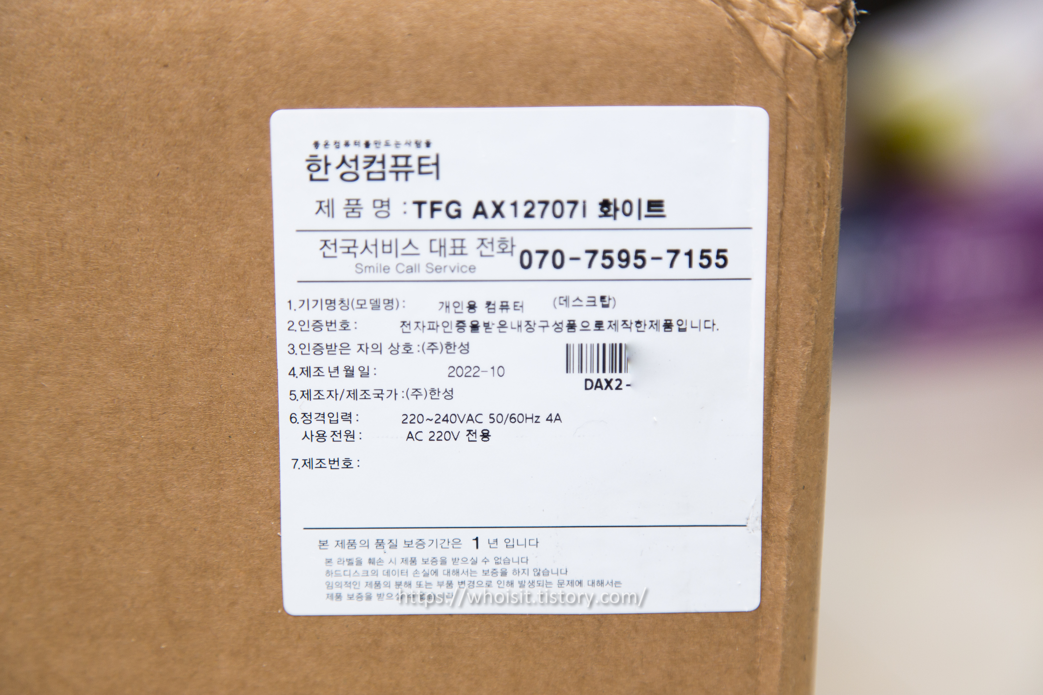 +한성컴퓨터 1년 보증 무상 출장 방문서비스