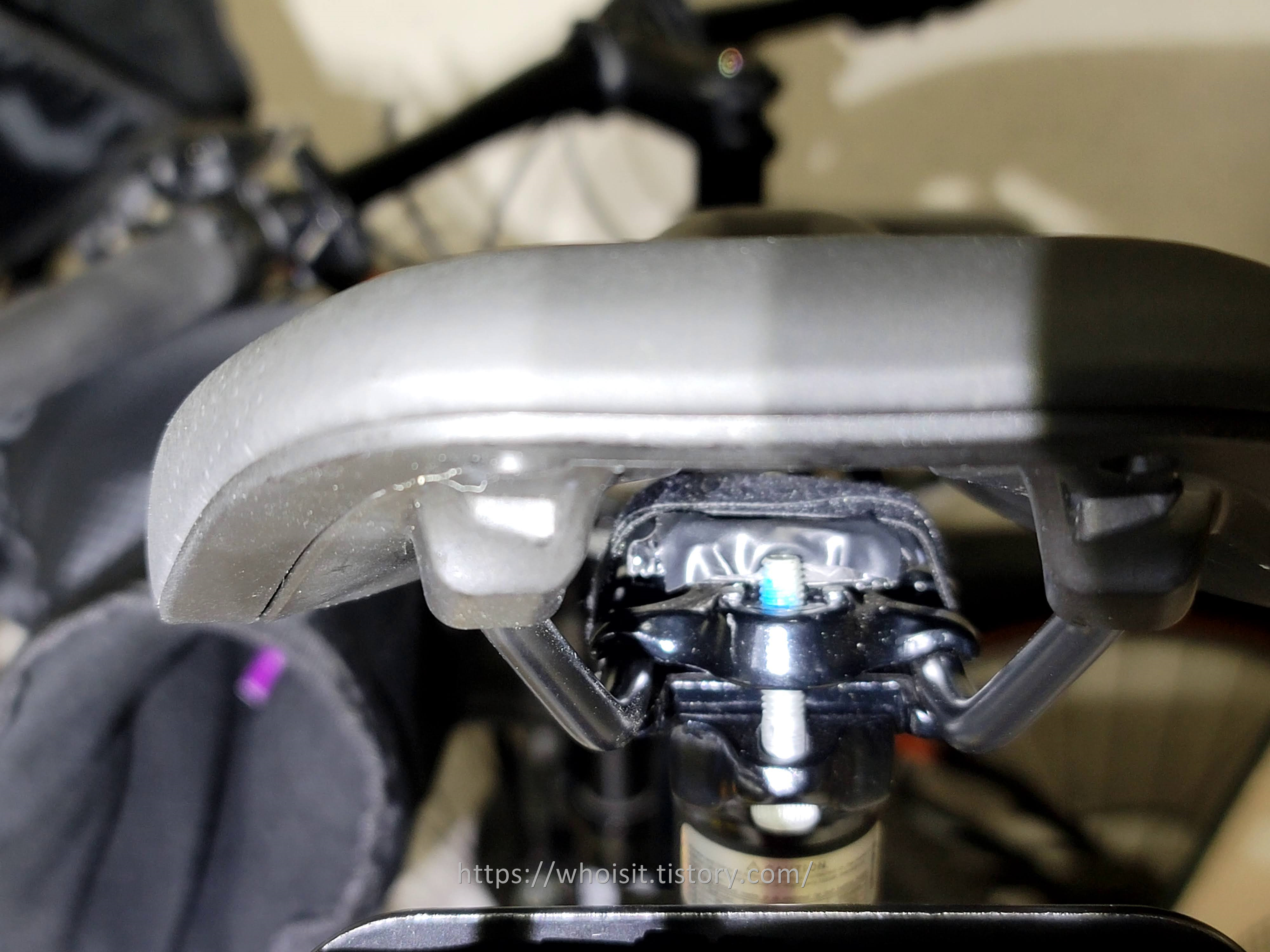 최종 낙점한 위치는 안장 아래의 안장과 아래 지지대 사이를 고정하는 마운트 부근을 선정했습니다 (자전거에 대한 고급 지식이 없는 관계로 사진에서 확인해 주세요)