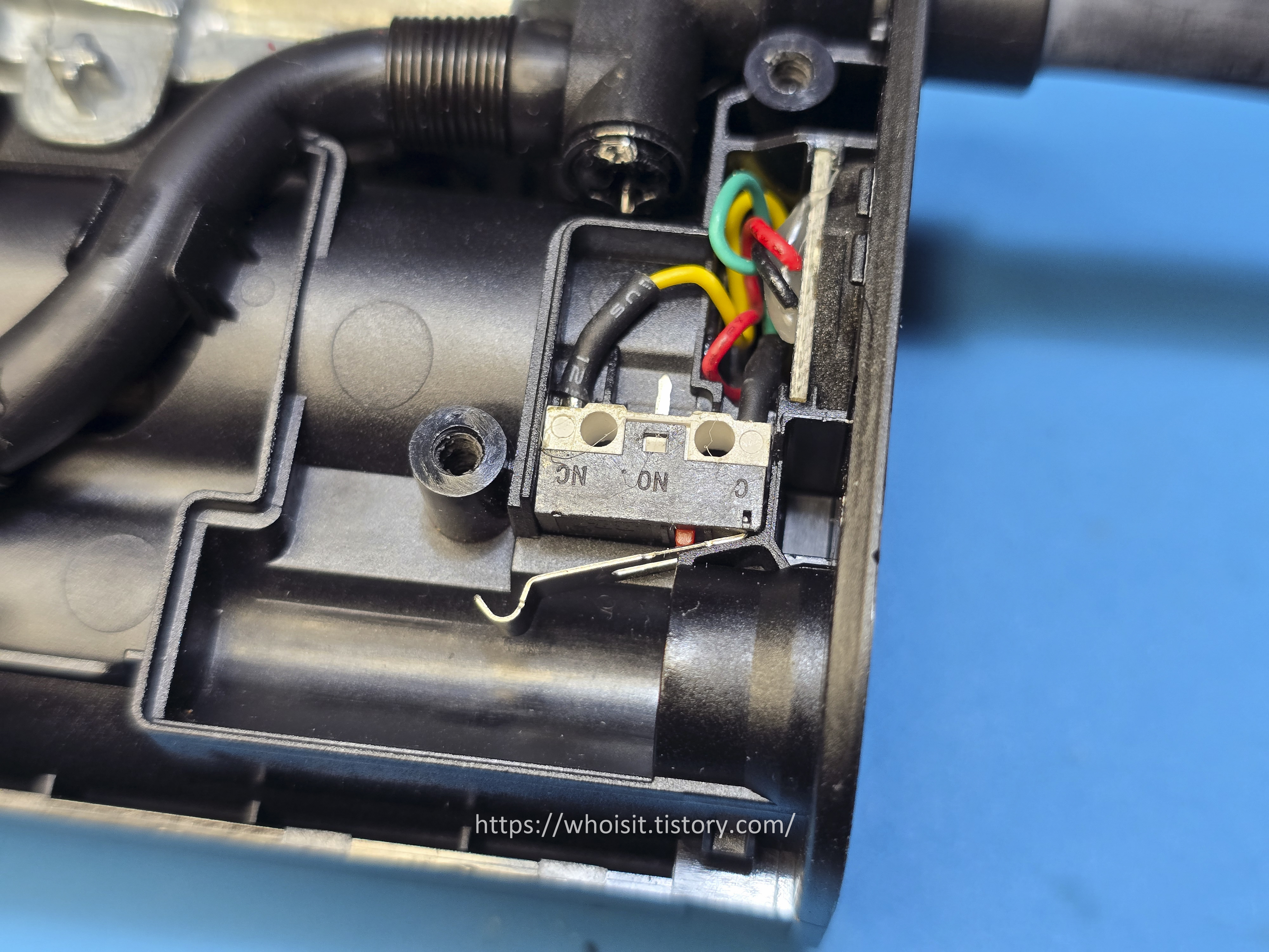 결국 안에 있을 전원 스위치가 고장 났을 것이라 생각하고 분해 후 문제 확인을 했습니다.
